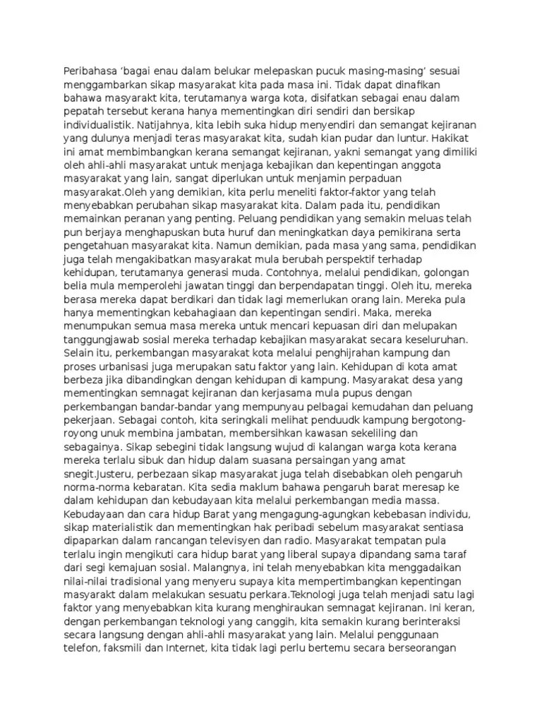 Peribahasa Semangat Kejiranan Semakin Luntur : Kertas 2. Semangat kejiranan yang semakin luntur telah menyebabkan masalah dalam masyarakat. Hal ini dapat kita lihat dalam peribahasa melayu, iaitu ibarat aur dengan tebing yang. Selain itu, usaha yang semakin pudar hari ini adalah budaya kunjung mengunjung. Tidak dapat kita nafikan bahawa sememangnya sesetengah . Pepatah melayu ada mengatakan bahawa muafakat membawa berkat. Peribahasa ini sesuai untuk menggambarkan sikap masyarakat kita pada masa kini.